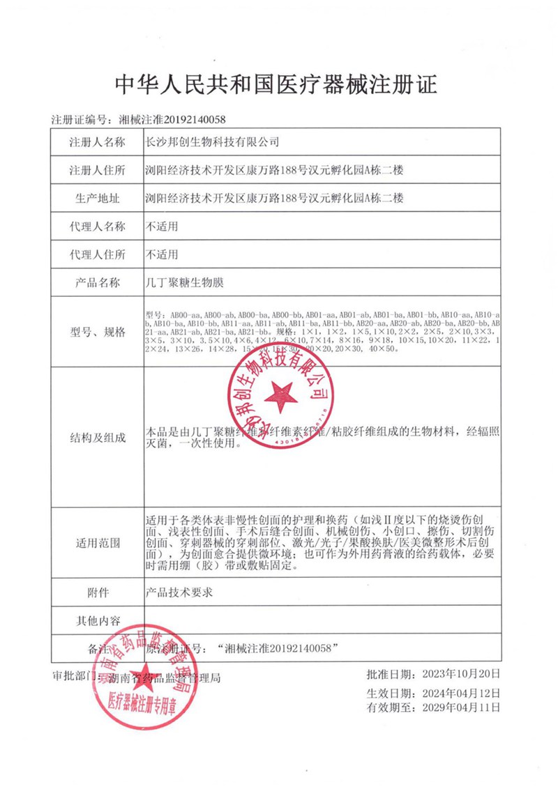 幾丁聚糖生物膜-注冊(cè)證