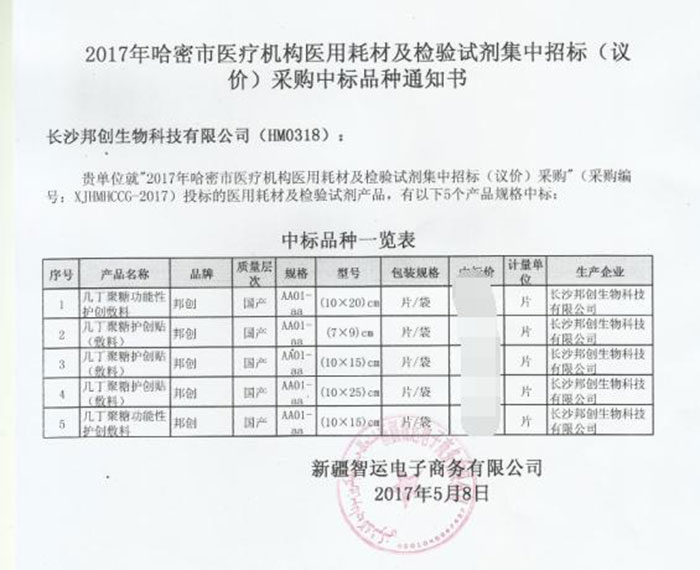 恭賀我公司產(chǎn)品在2017年新疆哈密醫(yī)用耗材招標(biāo)采購項(xiàng)目中標(biāo)